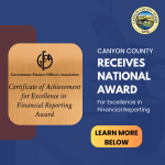CANYON COUNTY RECEIVES NATIONAL AWARD FOR EXCELLENCE IN FINANCIAL REPORTING
