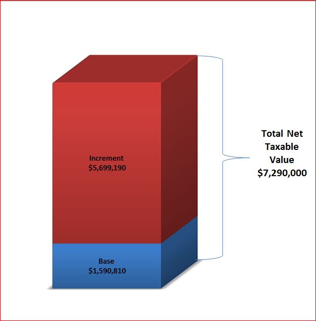 The first year’s value is the base value. This means there isn’t an increment value the first year and urban renewal does not have income that year. Every proceeding year for the life of the urban renewal district (typically 24 years) the first year’s value is subtracted from the current year’s value to calculate the increment. The larger the increment the more income generated for urban renewal.